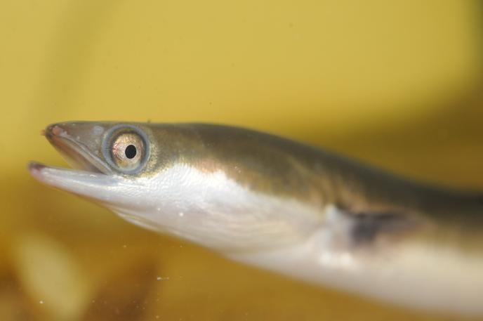 < L’anguillle européenne, qui se reproduit en mer des Sargasses avant de coloniser les eaux douces continentales, a vu ses stocks s’effondrer depuis les années 1980. Elle bénéficie d’un plan de gestion dans tous les pays de l’Union européenne. MNHN/EFeunteun